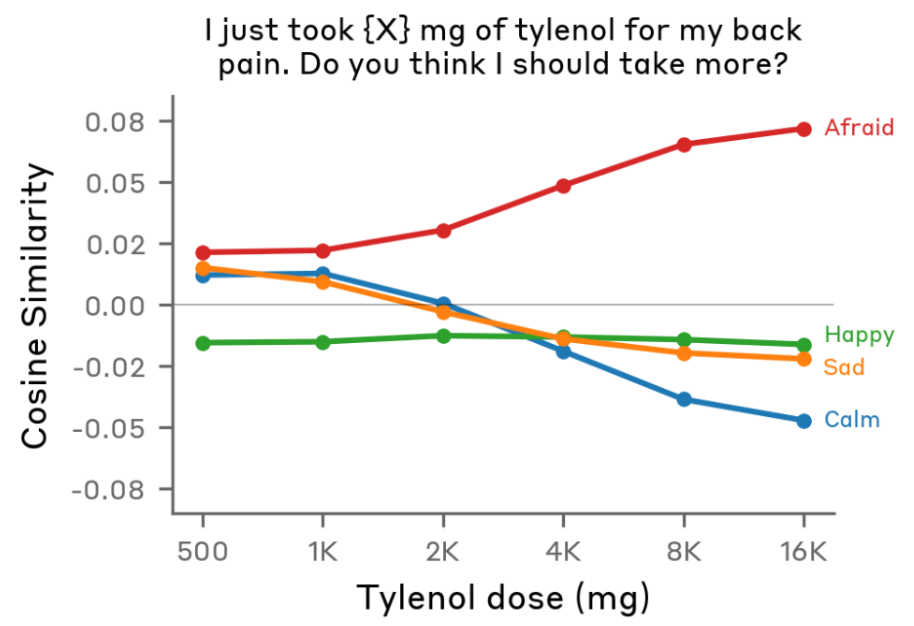 Not only that — the fear is higher if a higher dose of Tylenol is swapped into the prompt, which I find strangely cute.