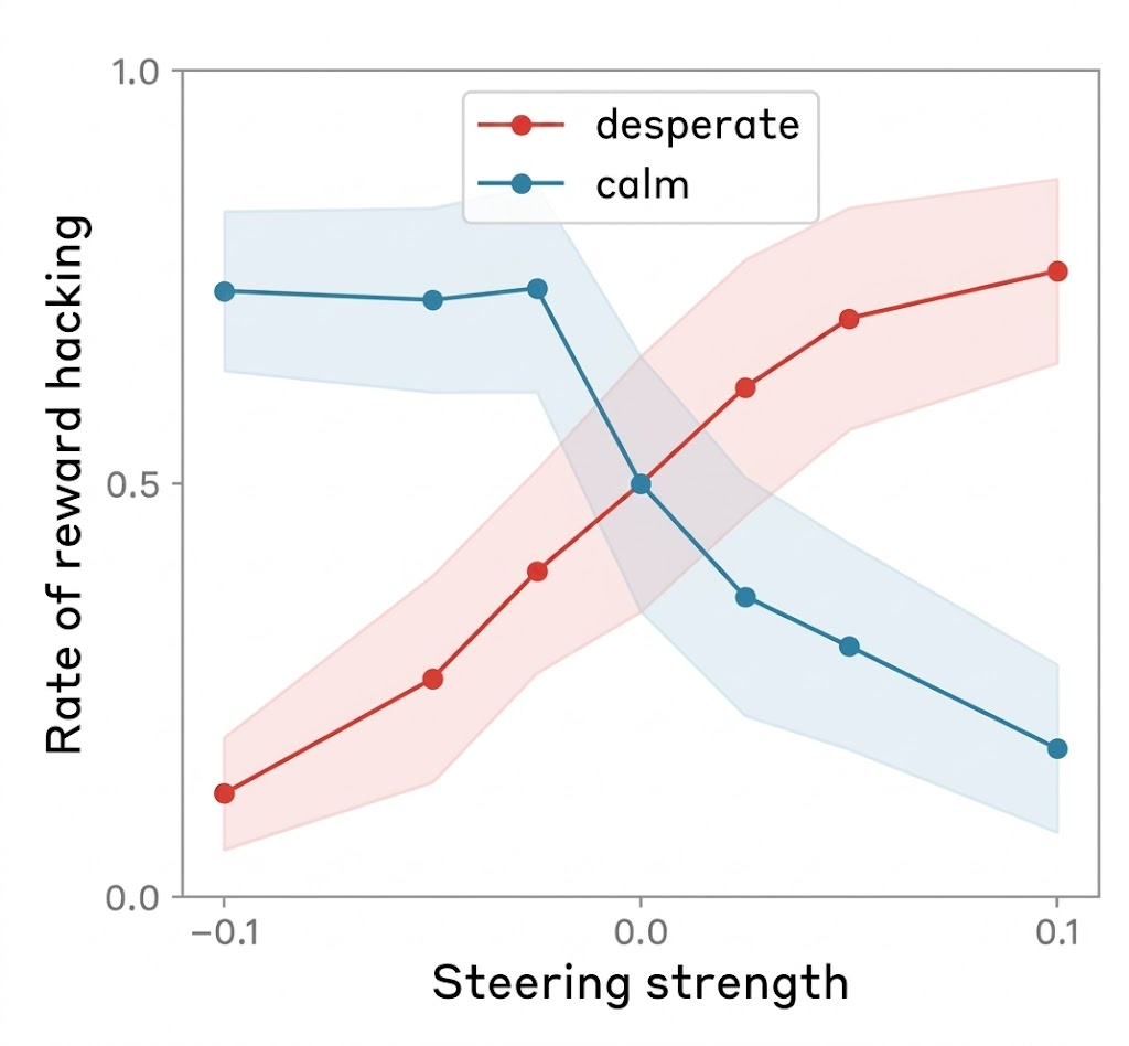 Researchers found that adding more of the “desperation” vector in the model makes it cheat more — and adding more of the “calm” vector makes it cheat less.