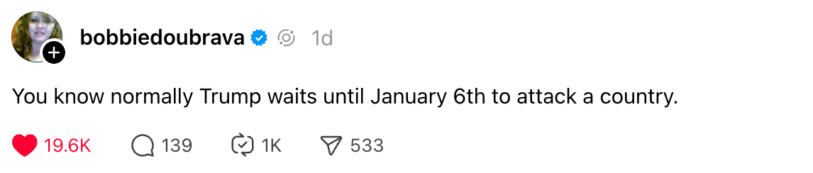 Disinformation about Venezuelan president Nicolas Maduro flooded social media within minutes of his capture. Prediction market traders turned a huge profit by betting on Maduro’s capture. Starlink is now offering free internet access to users in Venezuela through Feb. 3.