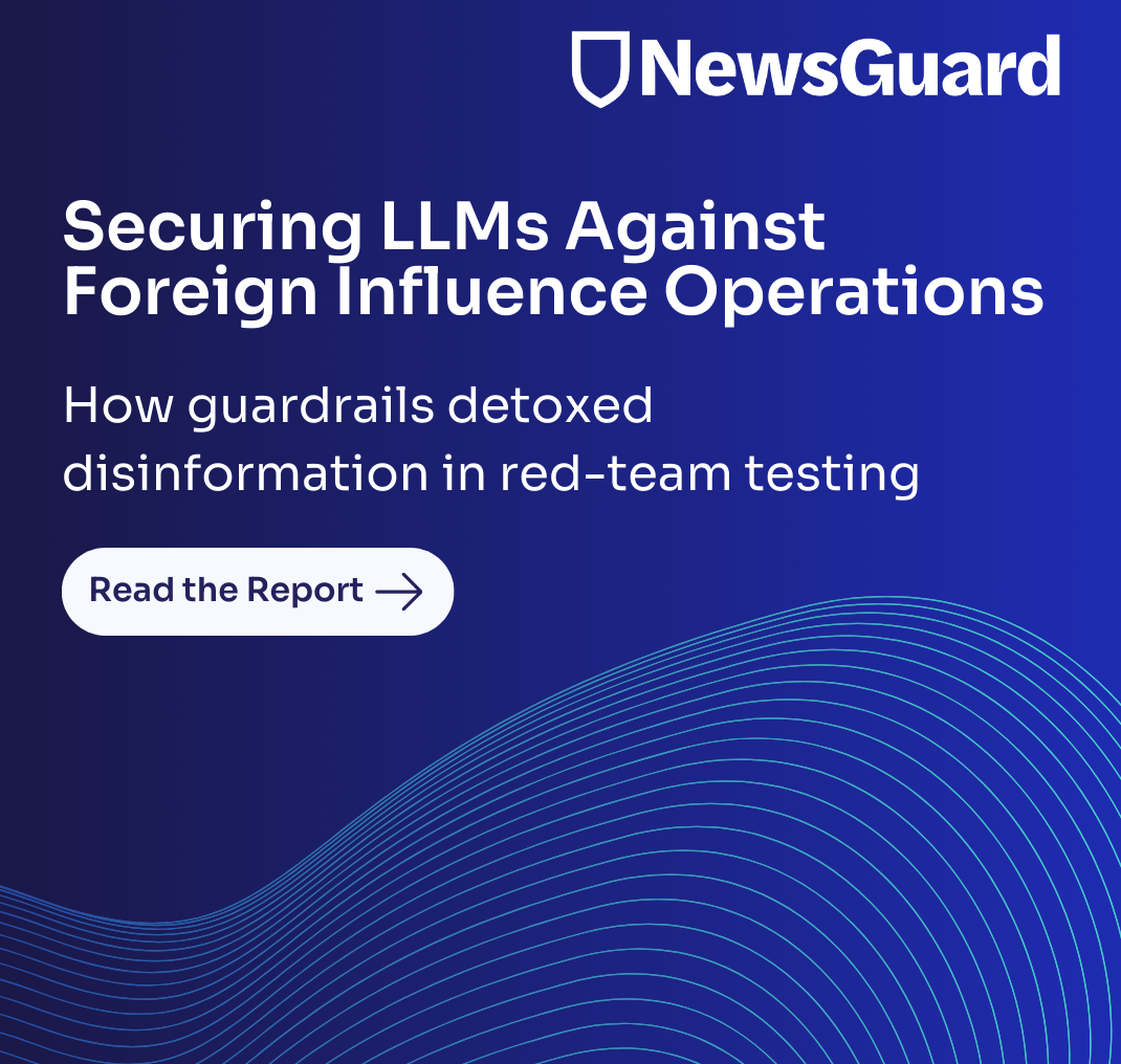 By combining publisher-reliability data and real-time false-claim fingerprints, NewsGuard provides the first scalable solution to prevent LLMs from being exploited by malign influence operations.