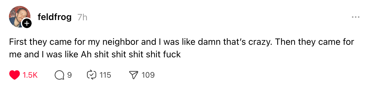 Meta is blocking links to an ICE tracking list on its platforms. Surely the House Republicans who investigated Meta's temporary blocking of the Hunter Biden laptop story will investigate this one, too?
